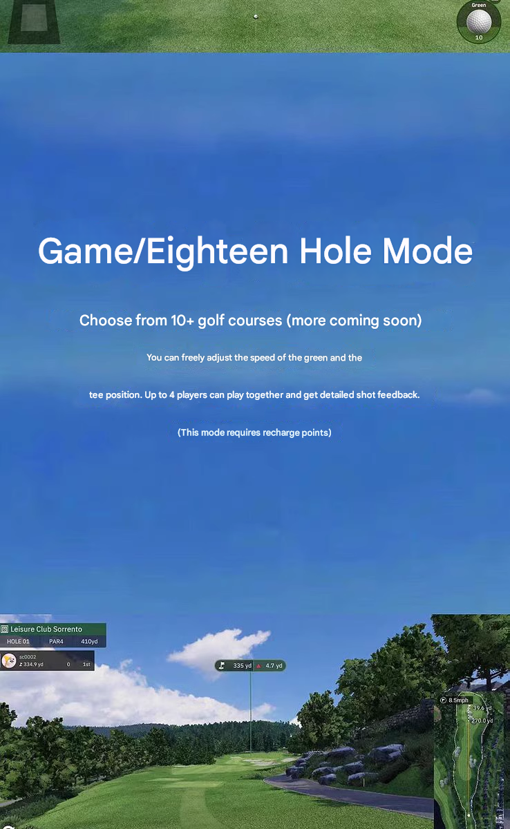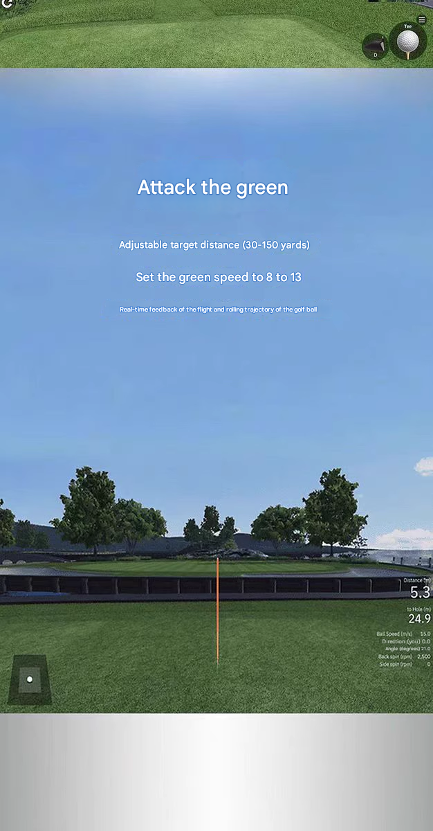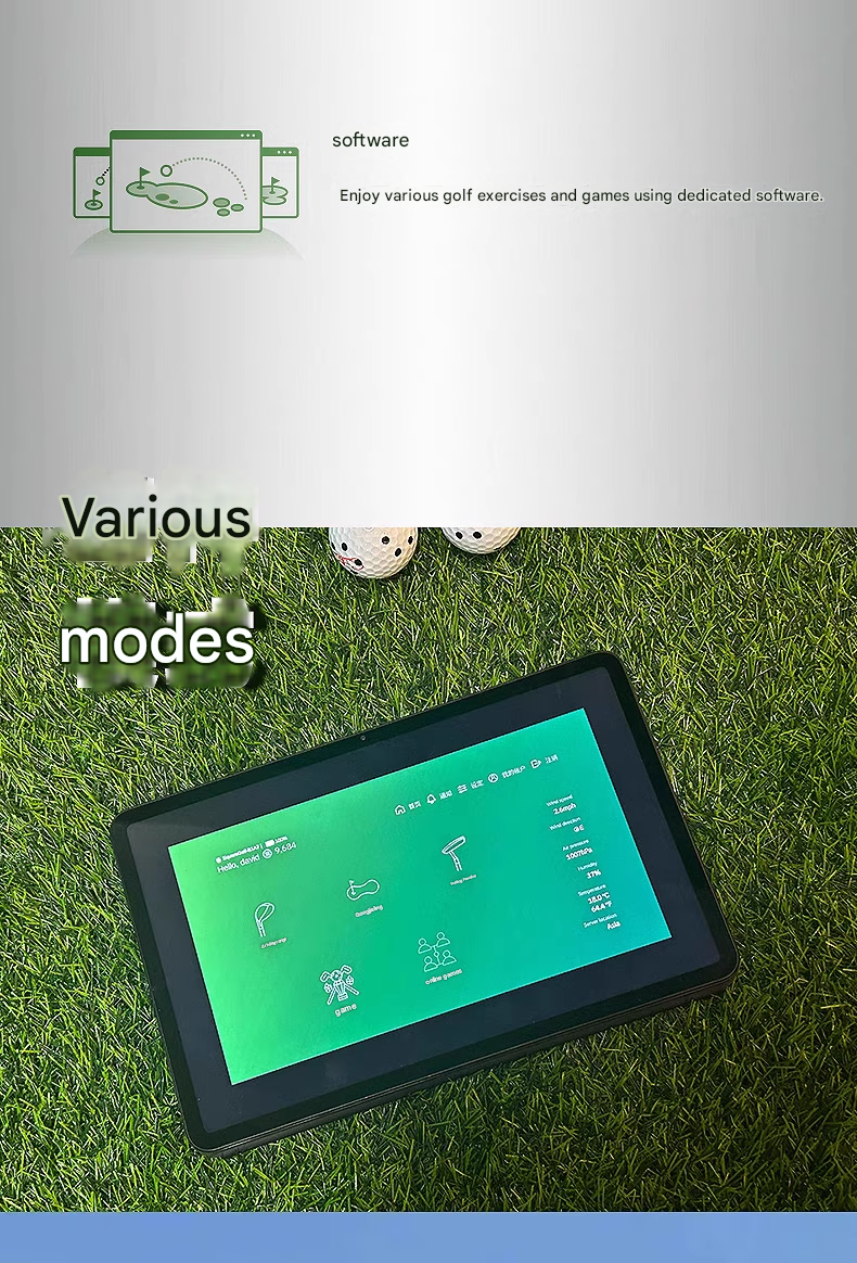 Various swing training, distance measurement, direction practice, and swing trajectory analysis are possible indoors